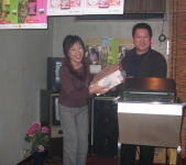 ←当店ホームページ2万回目のアクセス頂いた参加者が今年はたまたまワインパーティーにも初参加頂き記念品贈呈しました。